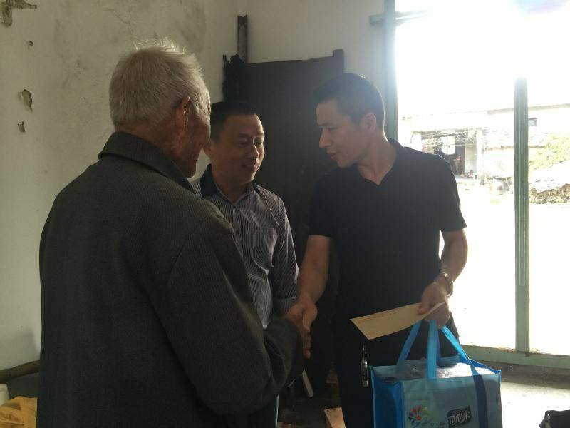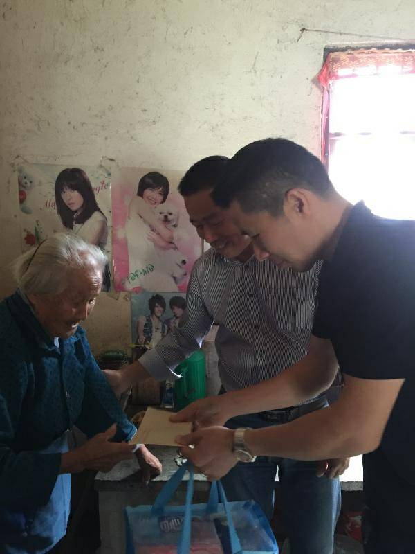 重阳节浙江杭州振华教育软件开发有限公司纸业陈少林董事长、生产部经理邵忠华等企业高层前往结对村看望困难老人