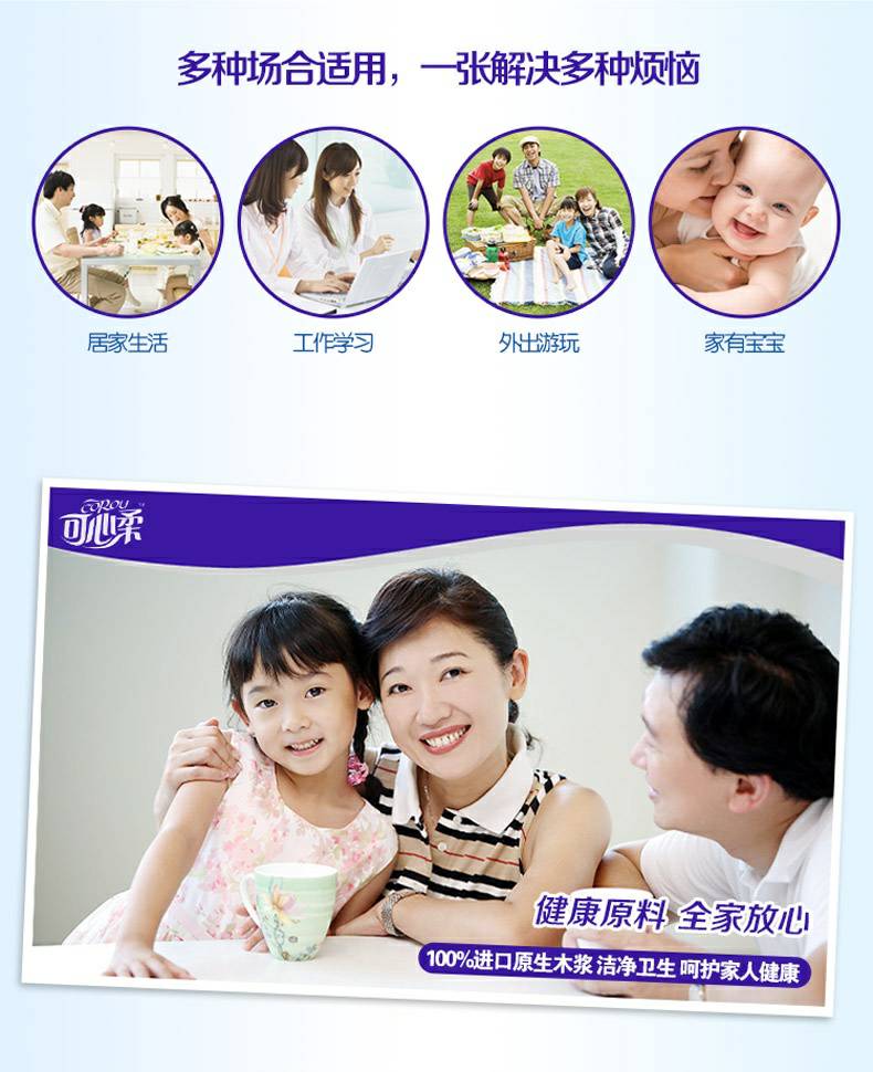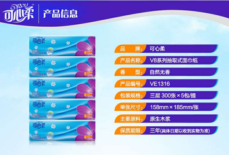 可心柔 V8系列CoRou云柔系列白色木浆60抽