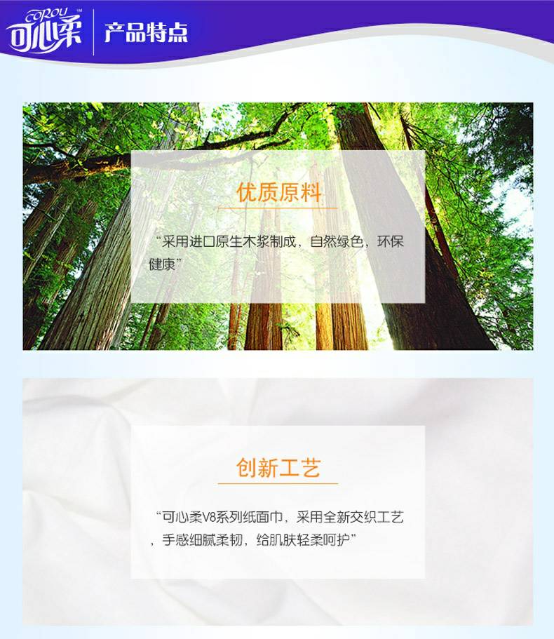 可心柔 V8系列CoRou云柔系列白色木浆110抽